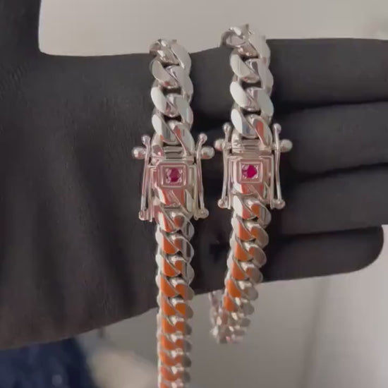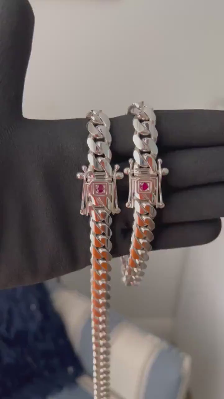 12mm Wide Solid Miami Cuban Link Chain with Ruby stone Lock | 925 Sterling Silver Chain | Men's Jewelry | With Certificate of Authenticity and 925 Hallmark