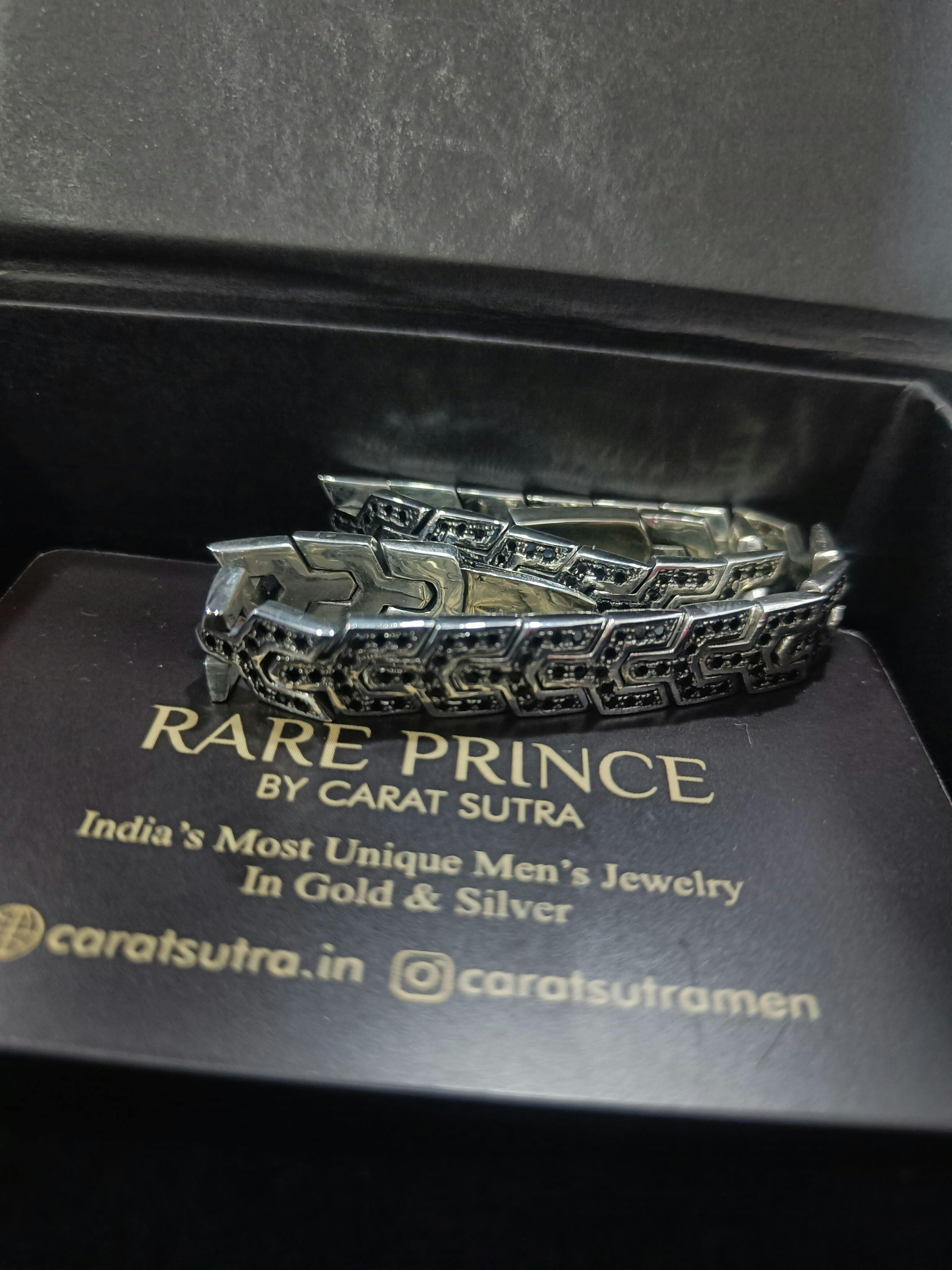 RARE PRINCE by CARAT SUTRA | Classy Black Zircon Bracelet for Men | 925 Silver Bracelet | Men's Jewelry | With Certificate of Authenticity and 925 Hallmark