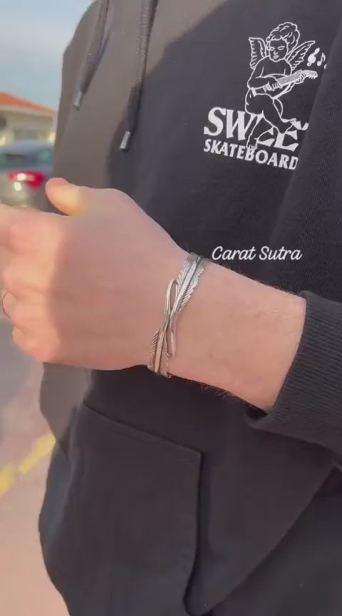 RARE PRINCE by CARAT SUTRA | Unique Adjustable Feather Style Bangle/kadaa/Handcuff for Men & Boys | 925 Sterling Silver Bracelet | Men's Jewelry | With Certificate of Authenticity and 925 Hallmark