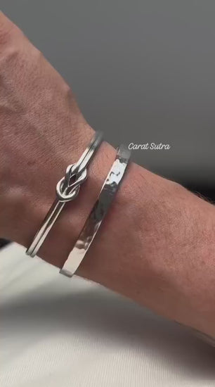 RARE PRINCE by CARAT SUTRA | Adjustable Unique Knot Designed Bangle/kadaa/Handcuff for Men & Boys | 925 Sterling Silver Bracelet | Men's Jewelry | With Certificate of Authenticity and 925 Hallmark