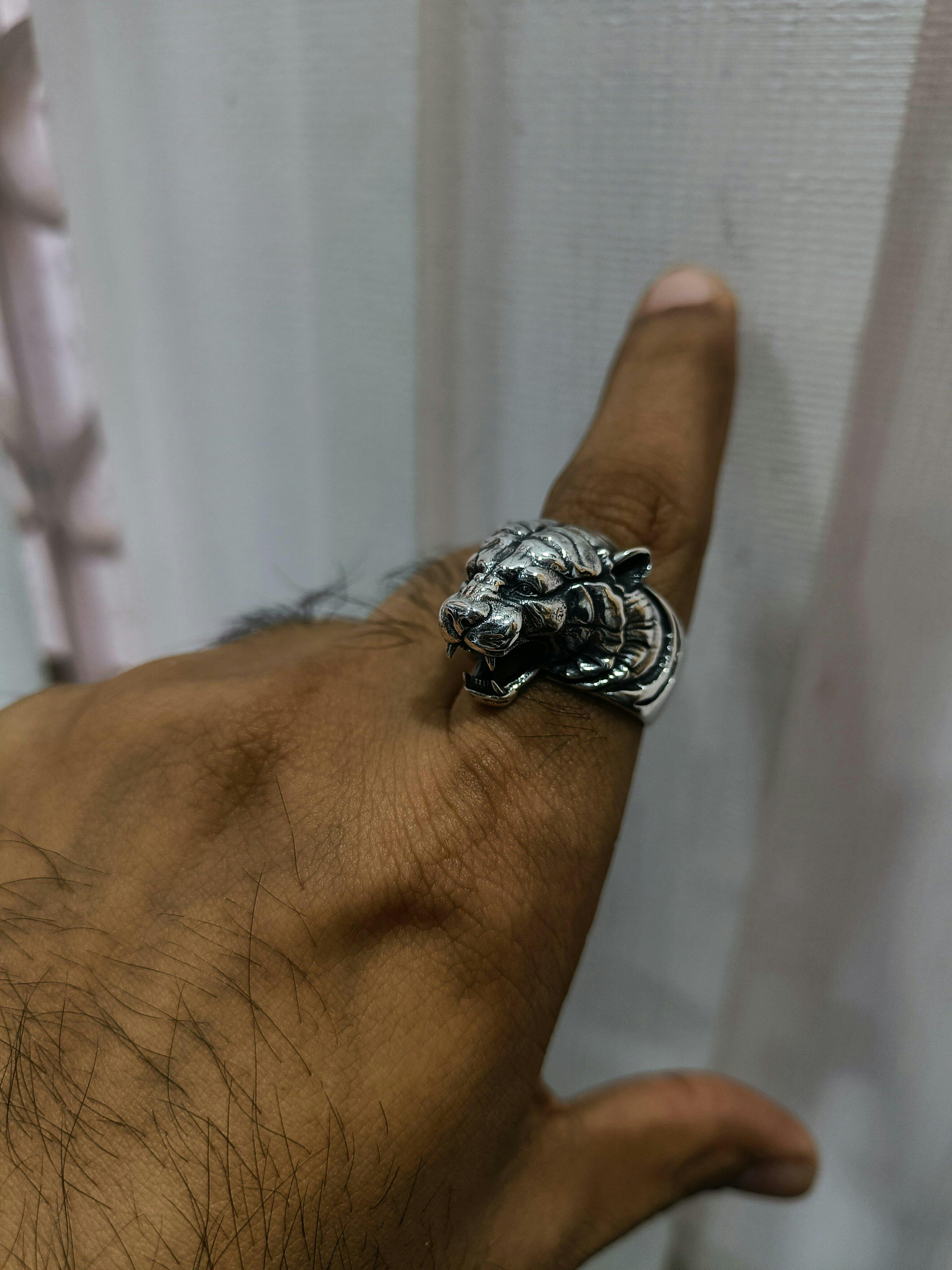 RARE PRINCE by CARAT SUTRA | Unique Designed Tiger Face Ring | 925 Sterling Silver Oxidized Ring | Men's Jewelry | With Certificate of Authenticity and 925 Hallmark