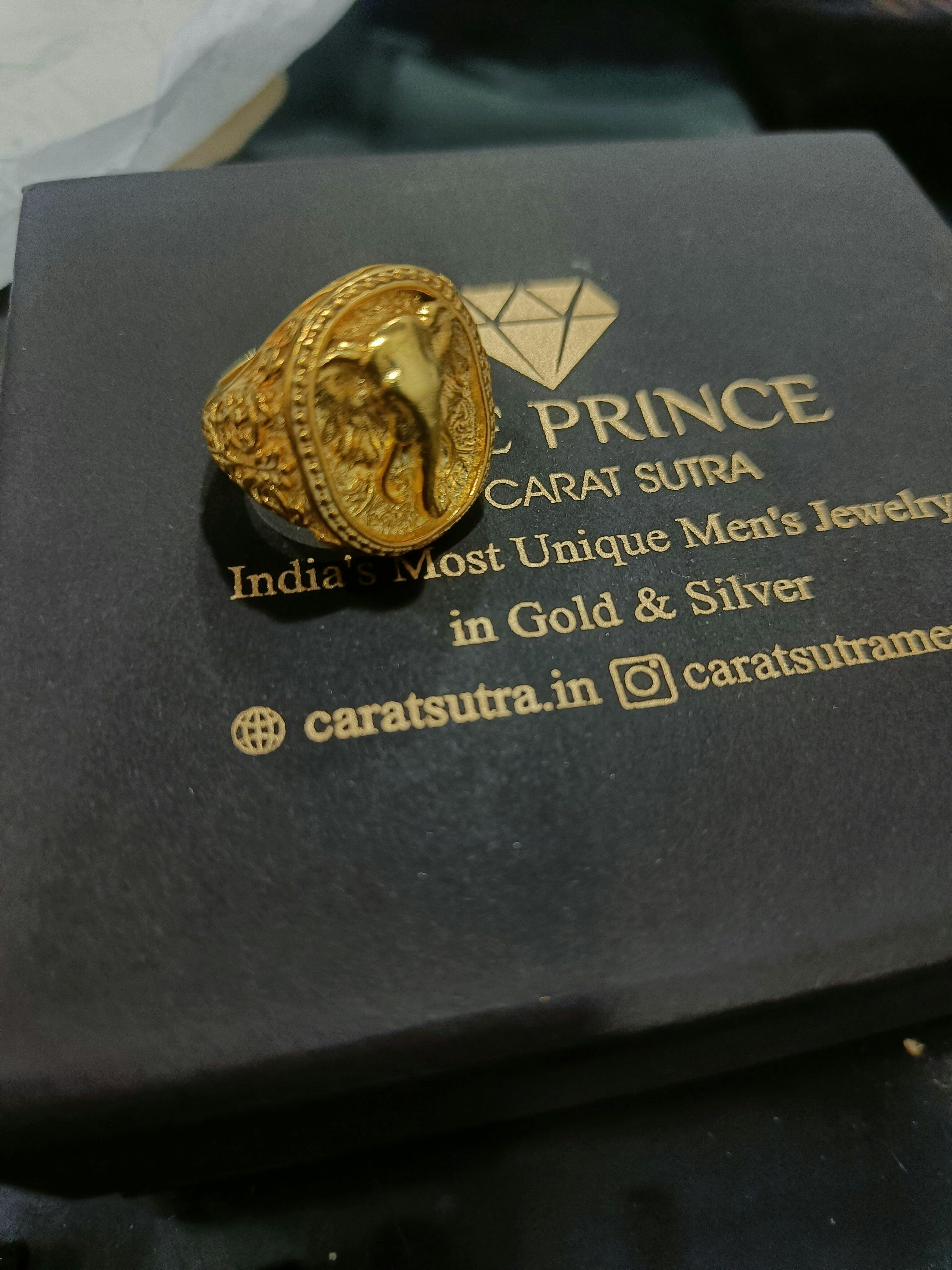 RARE PRINCE by CARAT SUTRA | Antique Designed Elephant Ring | 925 Sterling Silver Oxidized Ring | Men's Jewelry | With Certificate of Authenticity and 925 Hallmark