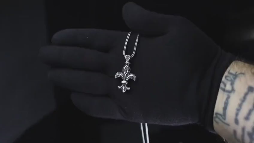 • PRODUCT DETAILS: This is an Exclusive 925 Pure Sterling Silver Oxidized Pendant in Fleur-de-lis Symbol studded with Cubic Zircons. Designed for ALPHA MEN