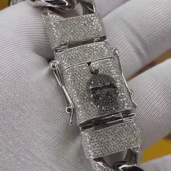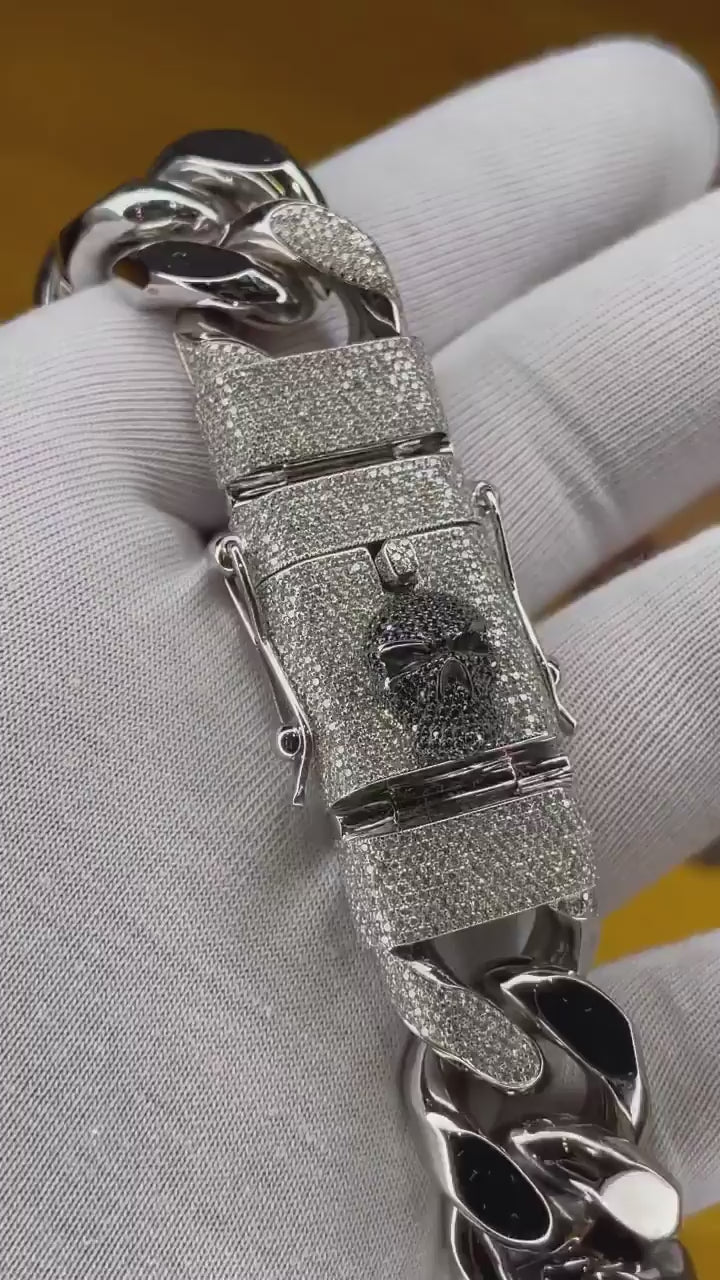 RARE PRINCE by CARAT SUTRA | Unique 19mm High Polished Solid Miami Cuban Bracelet with Iced Skull Lock for Men | 925 Sterling Silver Bracelet | Men's Jewelry | With Certificate of Authenticity and 925 Hallmark