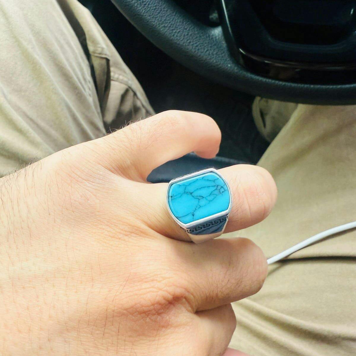 • PRODUCT DETAILS: This Exclusive 925 Pure Sterling Silver Ring is an Unique Turkish Style Men Ring. Designed for ALPHA MEN, studded with Irani origin turquoise, weighs around 14ct. The stone is 100% original and lab tested.