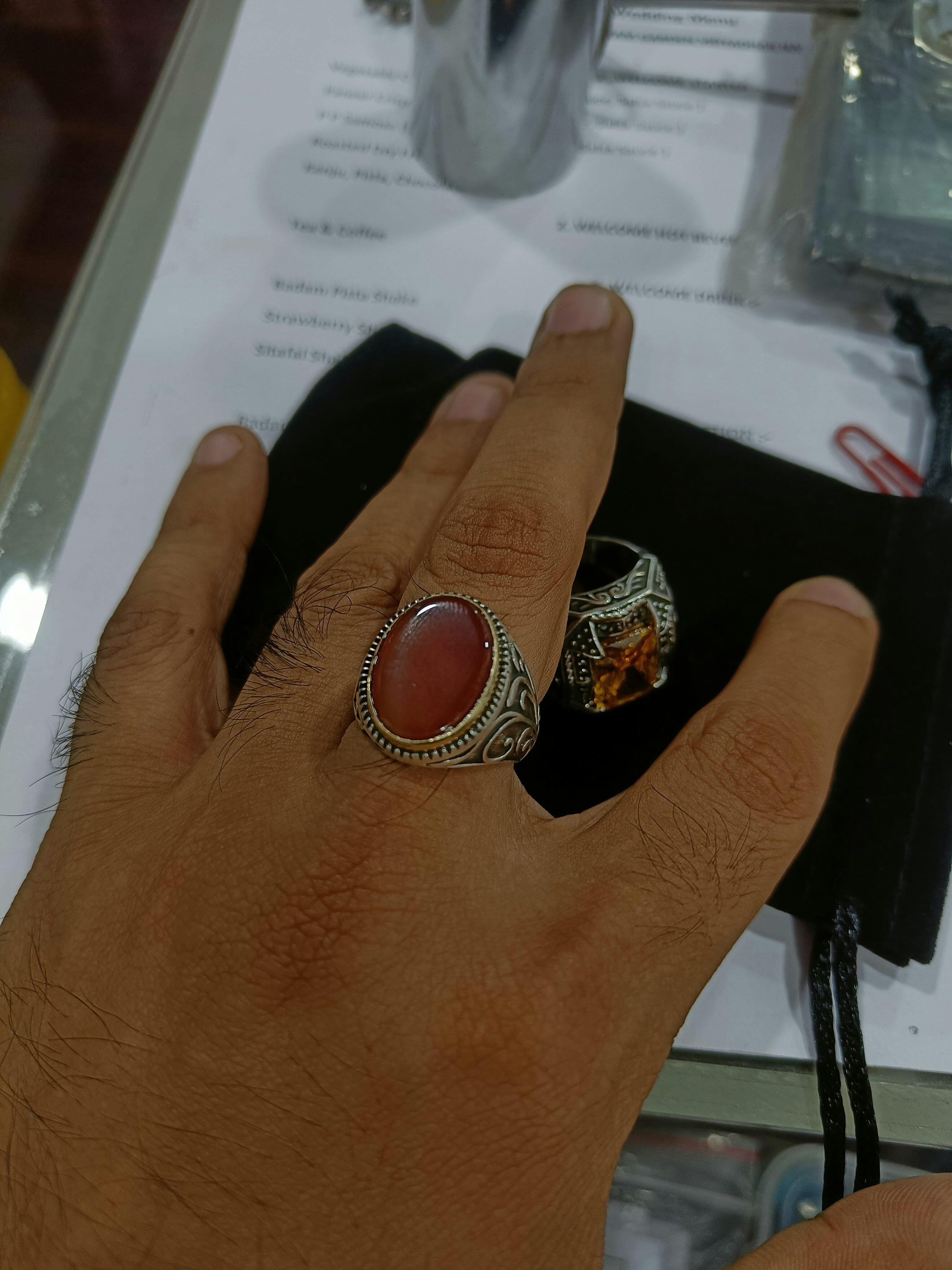 RARE PRINCE by CARAT SUTRA | Unique Turkish Style Ring with Natural Red Agate | 925 Sterling Silver Oxidized Ring | Men's Jewelry | With Certificate of Authenticity and 925 Hallmark