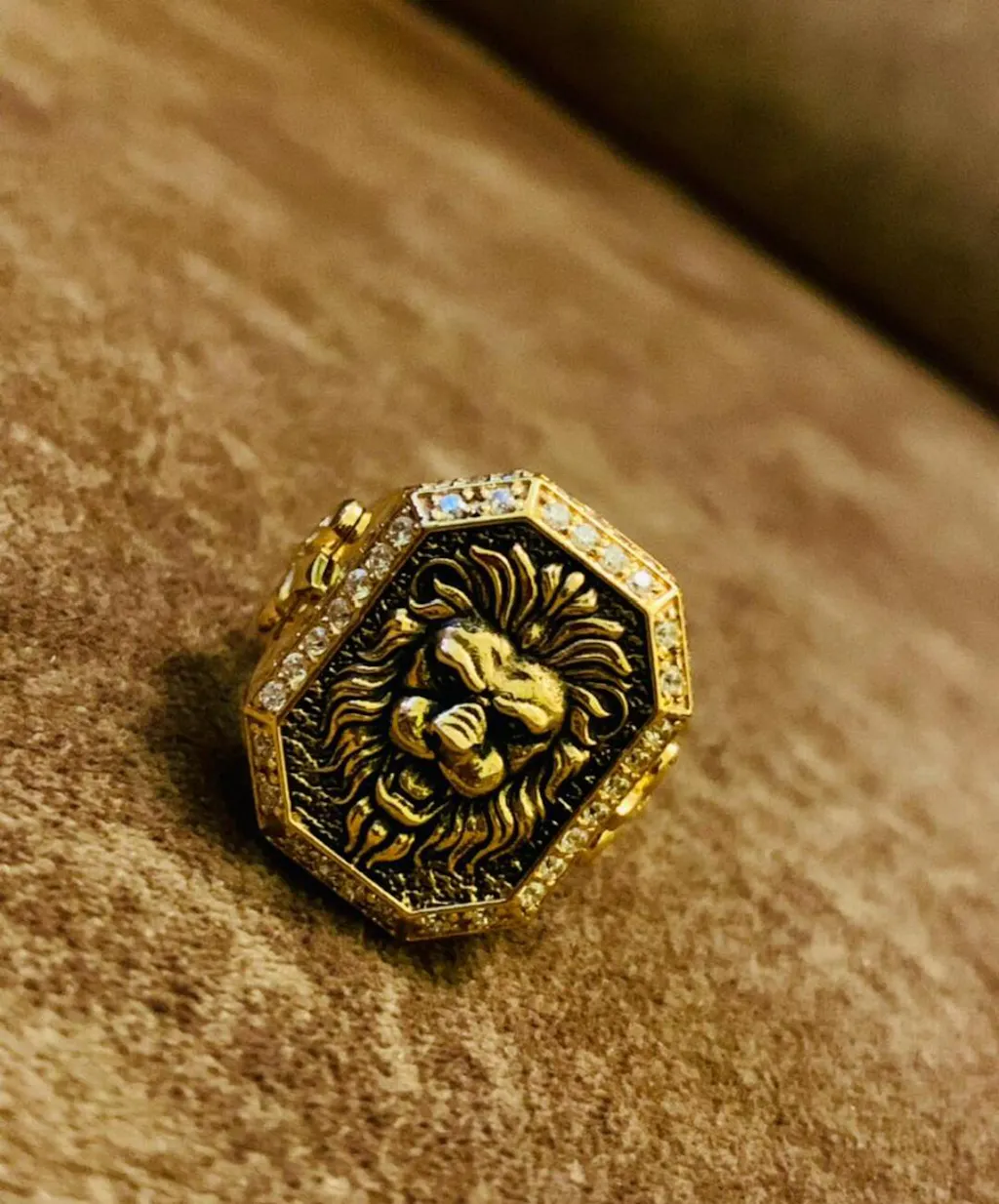 RARE PRINCE by CARAT SUTRA | Unique Design Two Tone Lion Ring with Illuminati/ Evil Eye Symbol | 22kt Gold Micron Plated 925 Sterling Silver Ring | Men's Jewelry | With Certificate of Authenticity and 925 Hallmark