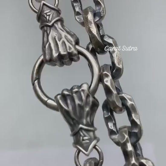 RARE PRINCE by CARAT SUTRA | 12mm Unique Fist Chain with Vintage Oxidised finish | 925 Sterling Silver | Men's Jewelry | With Certificate of Authenticity and 925 Hallmark