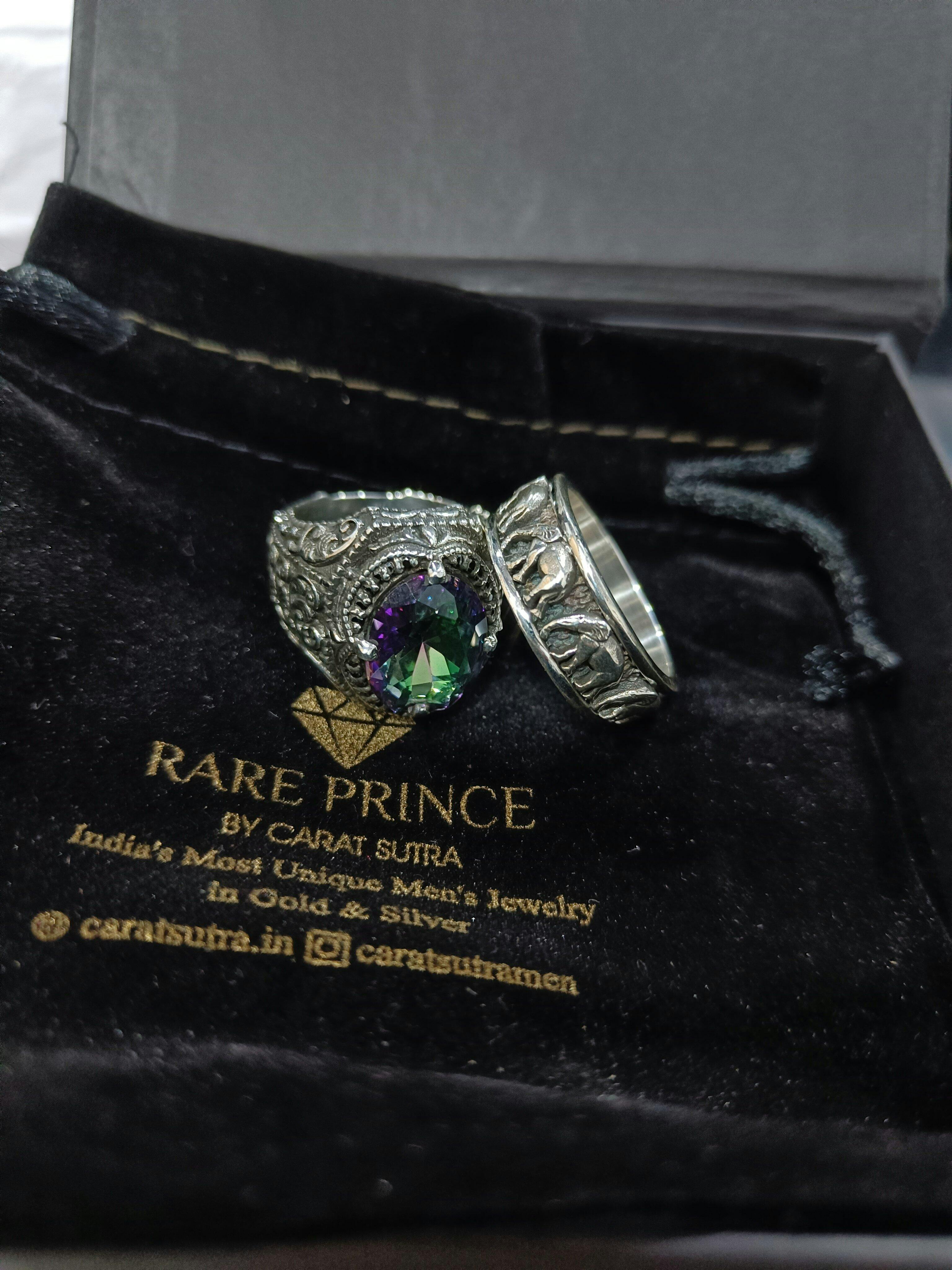 RARE PRINCE by CARAT SUTRA | Antique Designed Elephant Band Ring | 925 Sterling Silver Oxidized Ring | Men's Jewelry | With Certificate of Authenticity and 925 Hallmark