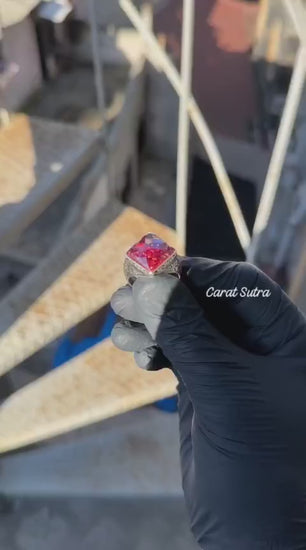RARE PRINCE by CARAT SUTRA | Unique Designed Ring with Natural Red Ruby | 925 Sterling Silver Oxidized Ring | Men's Jewelry | With Certificate of Authenticity and 925 Hallmark