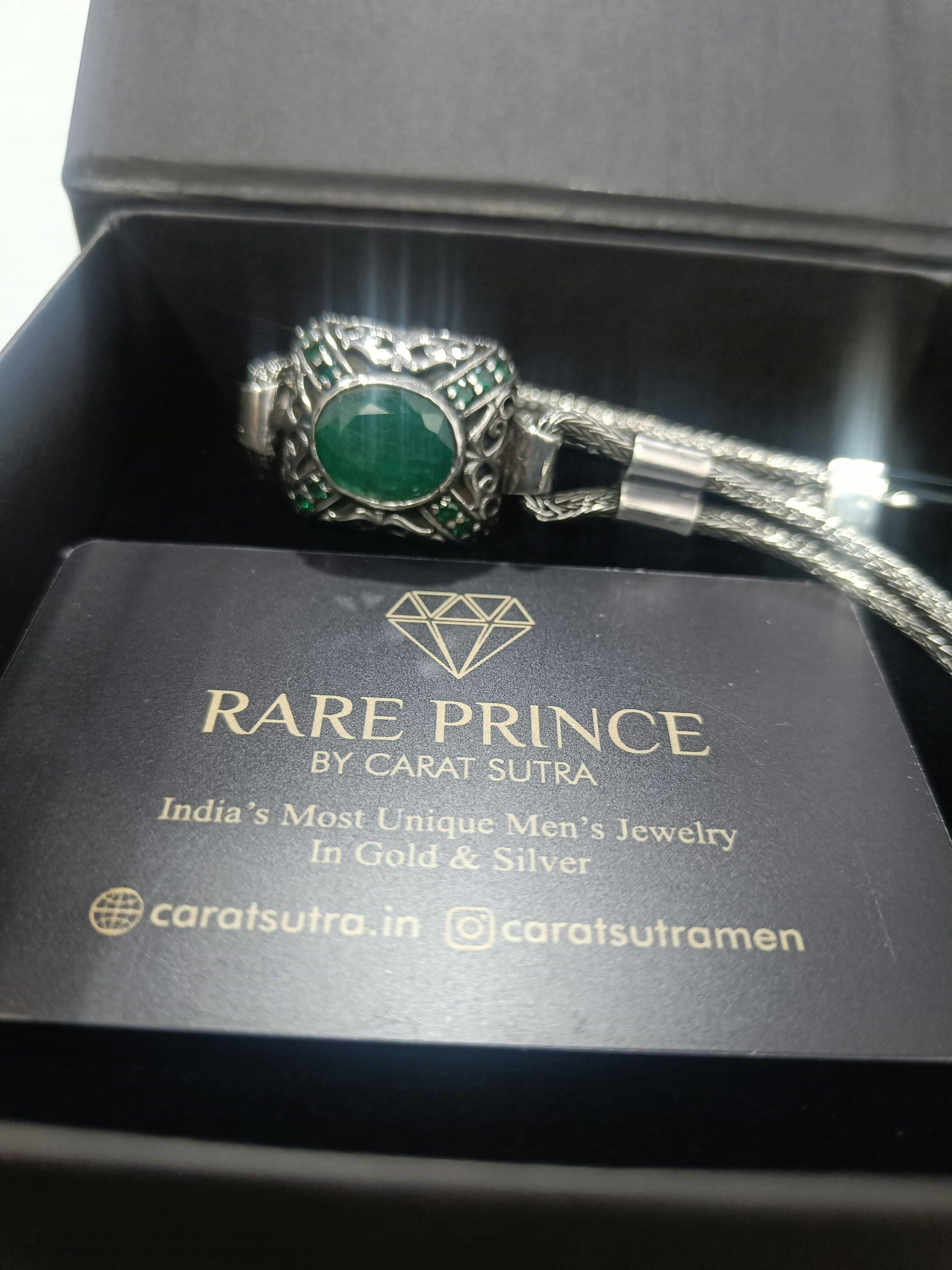RARE PRINCE by CARAT SUTRA | Unique Green Emerald hand beaded Bracelet for Men | Oxidized 925 Silver Bracelet | Men's Jewelry | With Certificate of Authenticity and 925 Hallmark