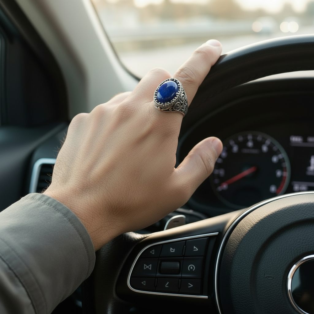 RARE PRINCE by CARAT SUTRA | Unique Turkish Style Ring with Natural Blue Lapis Lazuli | 925 Sterling Silver Oxidized Ring | Men's Jewelry | With Certificate of Authenticity and 925 Hallmark