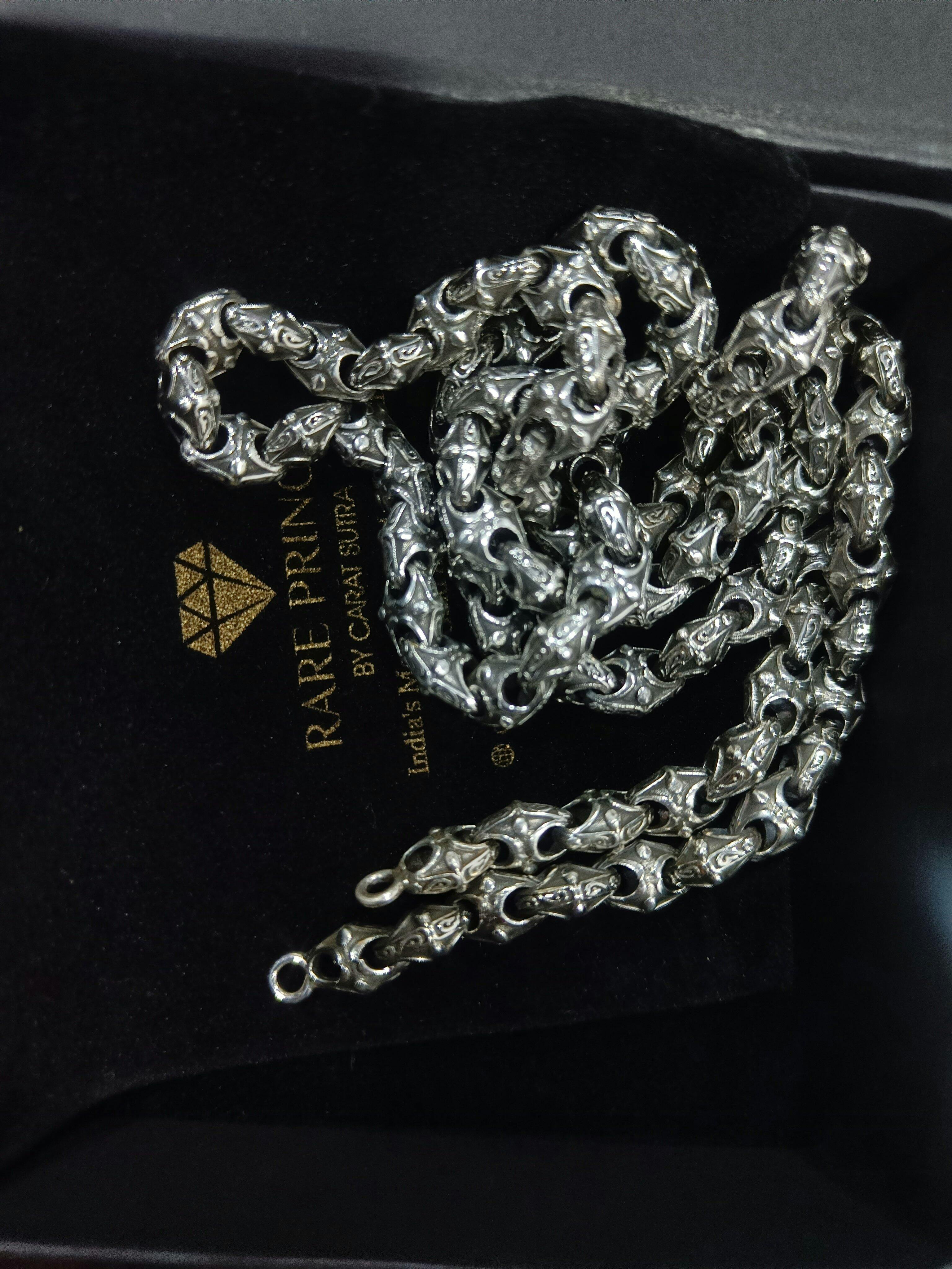 RARE PRINCE by CARAT SUTRA | Unique Vintage Artistry Ancient Oxidized Chain | 925 Sterling Silver Chain | Men's Jewelry | With Certificate of Authenticity and 925 Hallmark