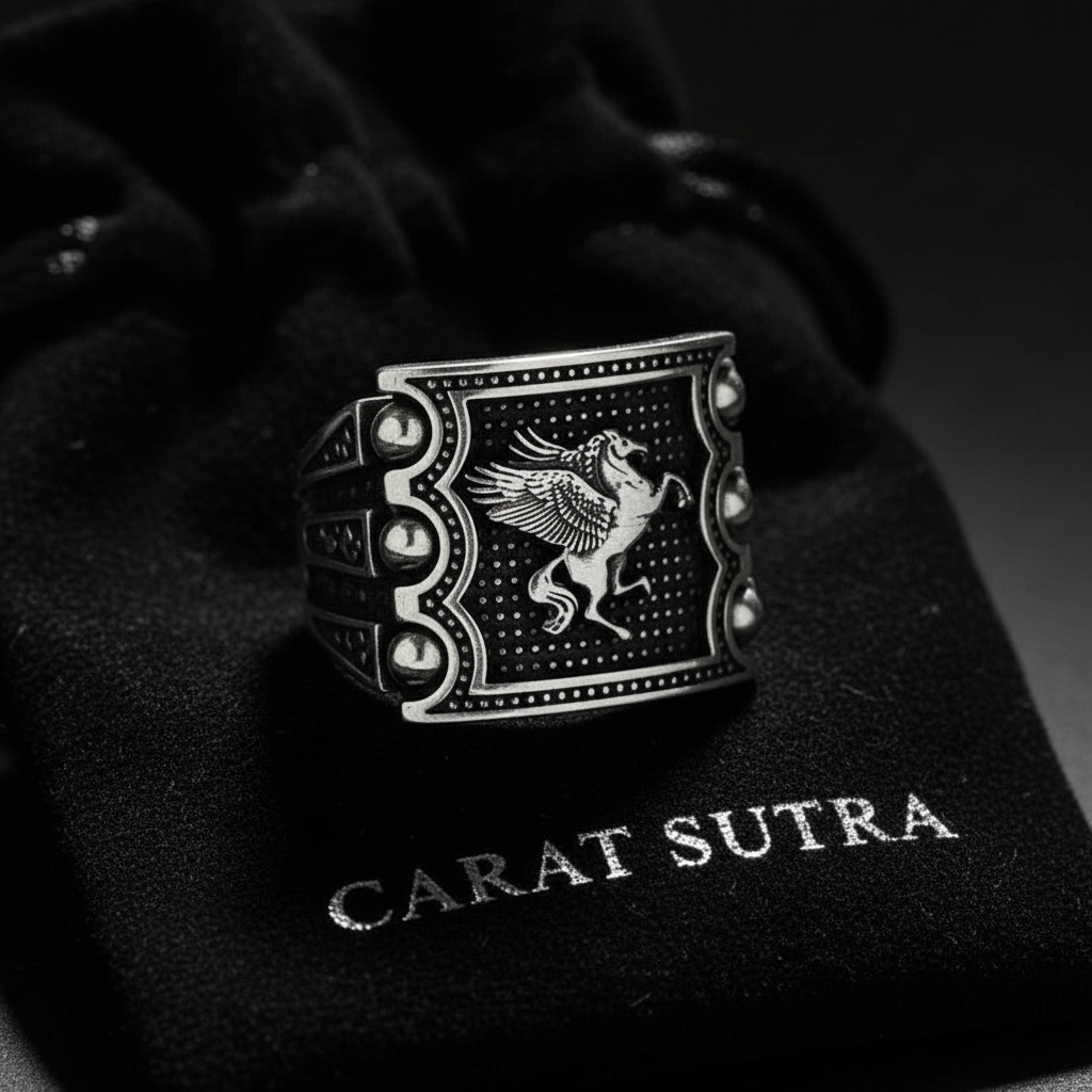 • PRODUCT DETAILS: This Exclusive 925 Pure Sterling Silver Ring is an Unique Pegasus Vintage Byzantine Style Men Ring. Designed for ALPHA MEN, weighs around 20g
